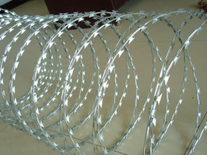 Razor barbed tape is a kind of modern security fencing materials fabricated with razor-sharp steel blade and high-tensile wire. Barbed Tape can be installed to achieve the result of frightening and stopping to the aggressive perimeter intruders, with piecing and cutting razor blades mounted at the top of the wall, also the special designs making climbing and touching extremely difficult. The wire and strip are galvanized to prevent corrosion.